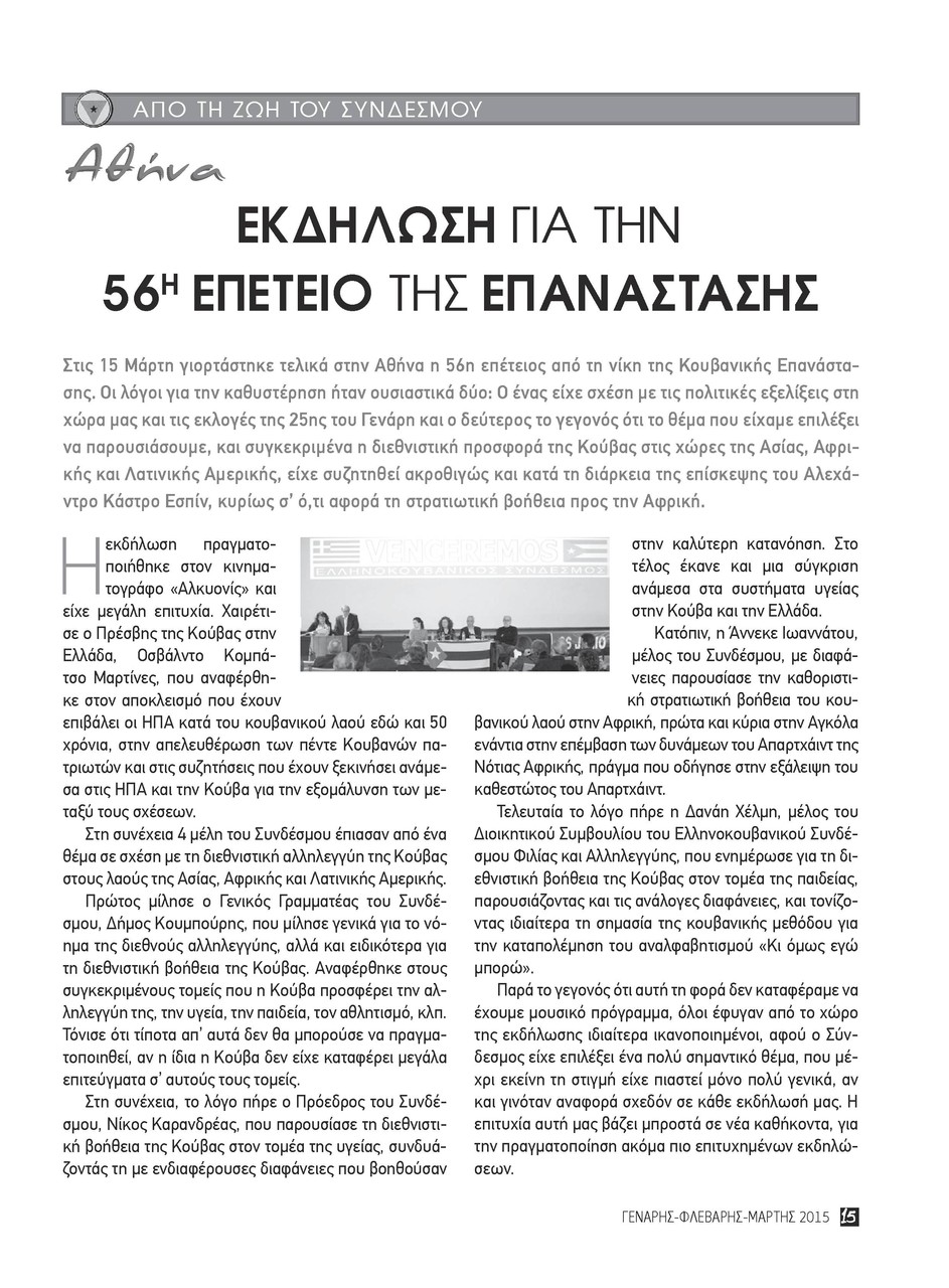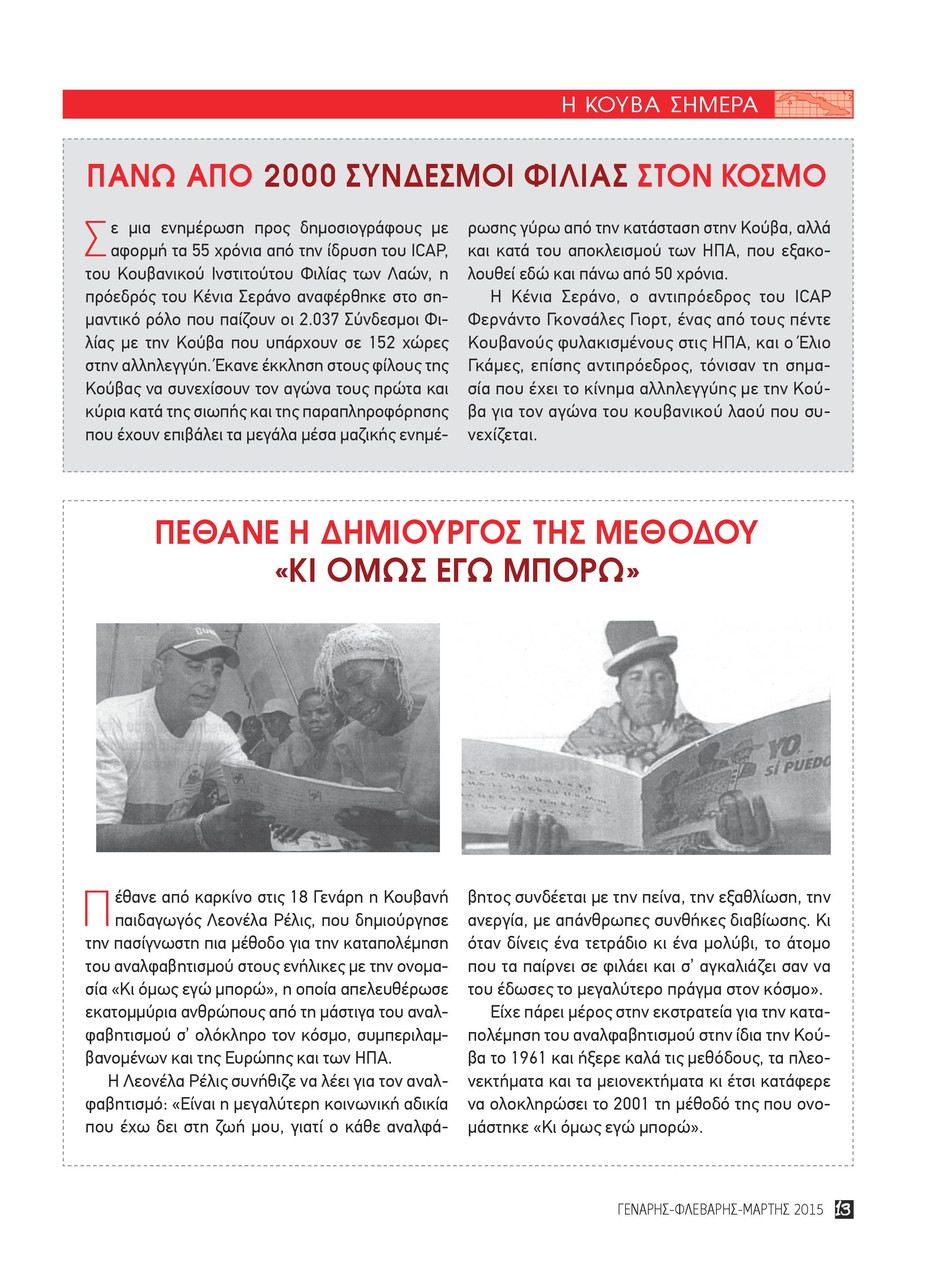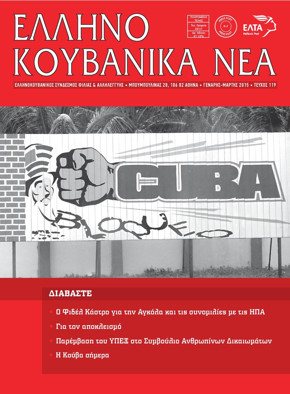 Εδώ μπορείτε να βρείτε το τεύχος 119 το περιοδικού του συνδέσμου. Στο περιοδικό αυτό θα βρείτε νέα για την Κουβα, εξελίξεις του αποκλεισμού ενώ σύγχρονος όλες τις δράσεις του συνδέσμου σε Αθηνα και Θεσσαλονίκη.