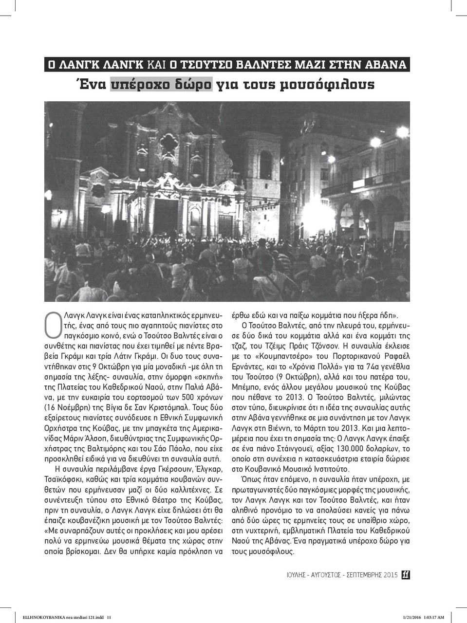 • Ο Λανγκ Λανγκ κι ο Τσούτσο Βαλντές μαζί στην Αβάνα