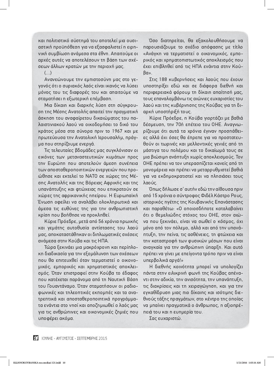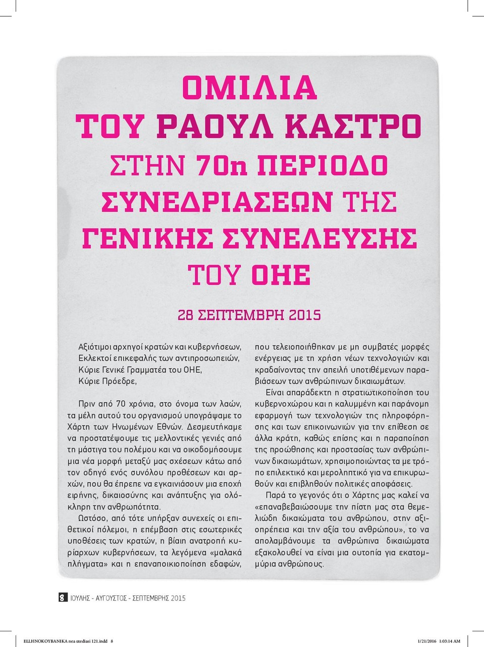 • Ομιλία του Ραούλ Κάστρο στη Γενική Συνέλευση του ΟΗΕ